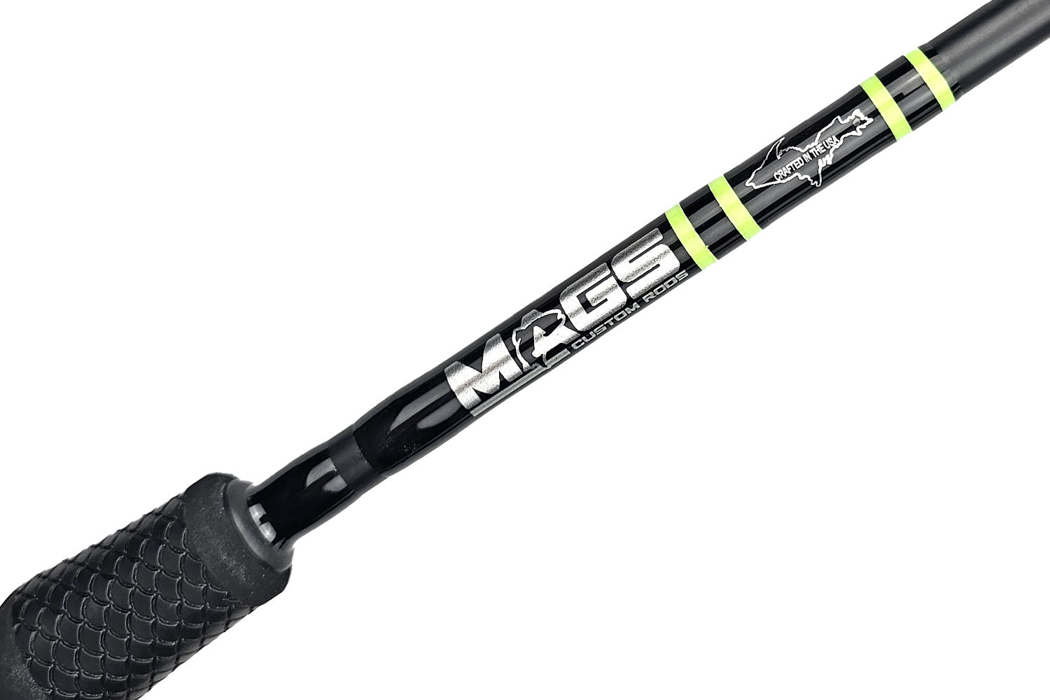 Designed for plastics, swim baits, hair jigs on big clear water where fish are pressured. Longer length is for casting lighter baits farther.
